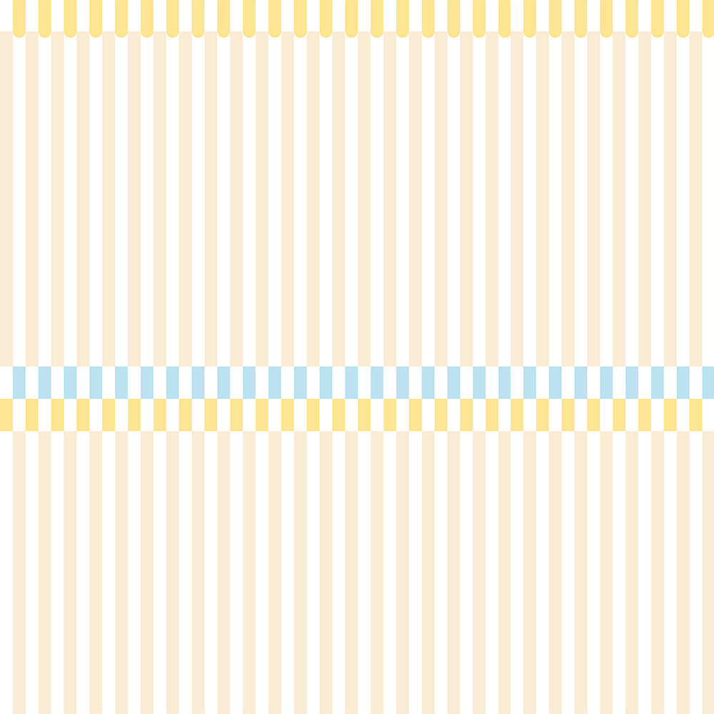 The wallpaper stripes are 5 cm wide, and the double-bark blue-and-yellow border runs precisely down the middle of the wallpaper.