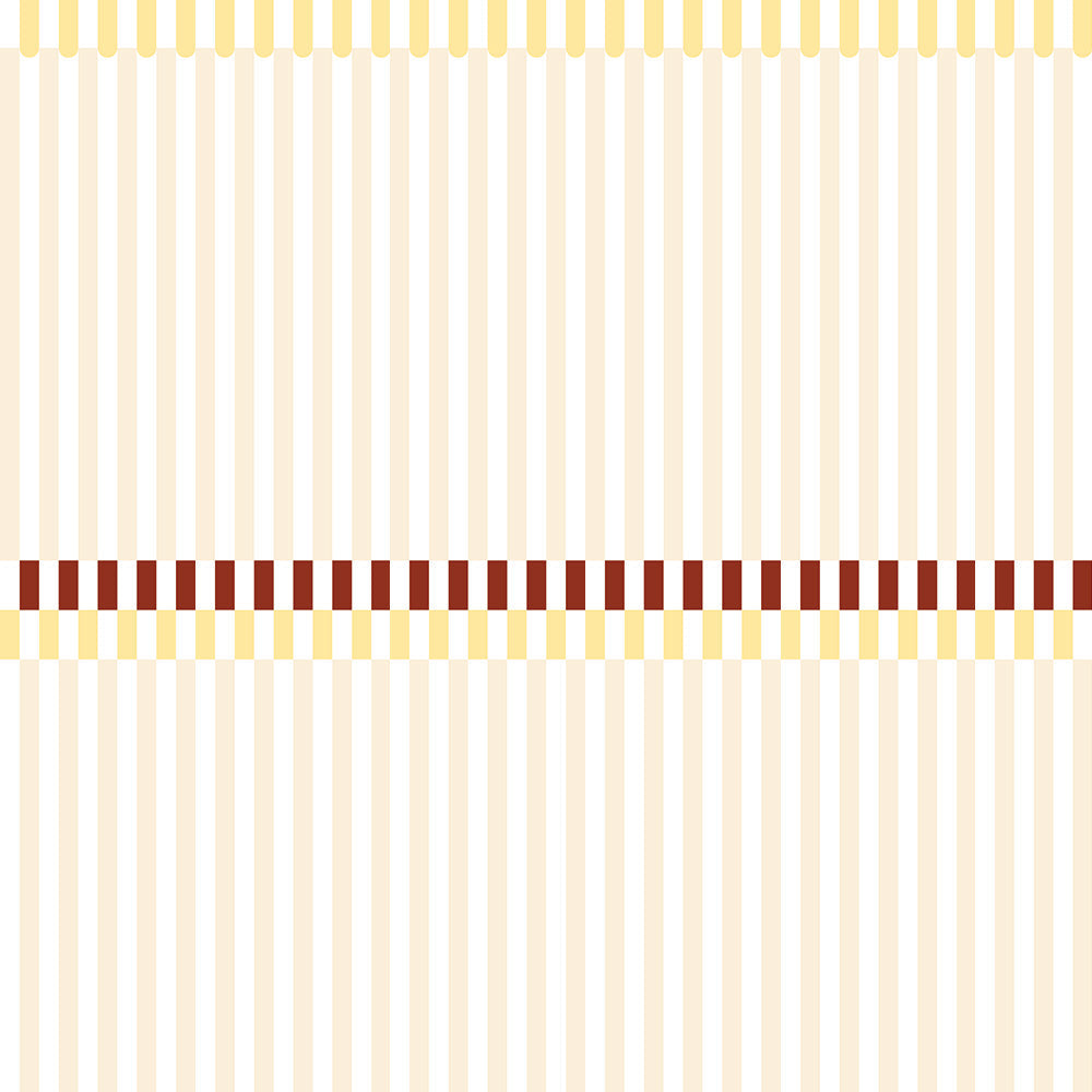 The wallpaper stripes are 5 cm wide, and the double-bark yellow and red border runs precisely down the middle of the wallpaper.