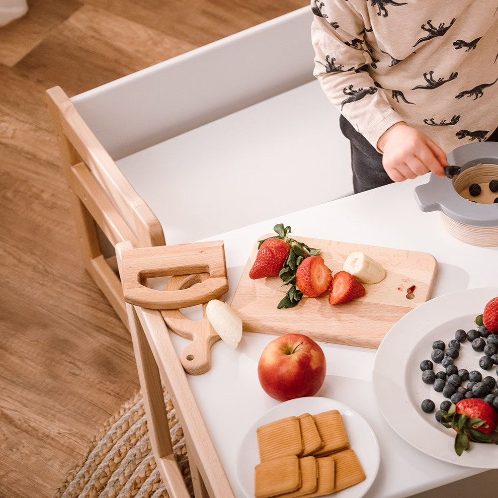 Unser TURTLE-Messer und Schneidebrett aus Holz ist die perfekte Wahl für junge Köche ab 3 Jahren!